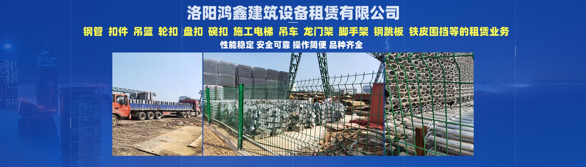 洛陽鴻鑫建筑設(shè)備租賃有限公司專業(yè)從事:鋼管.扣件. 吊籃.輪扣.盤扣.碗扣.施工電梯.吊車.龍門架.腳手架,鋼跳板、鐵皮...